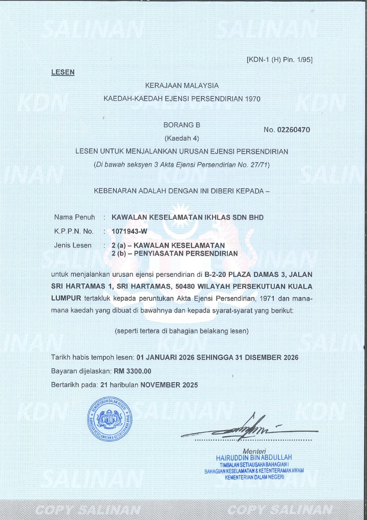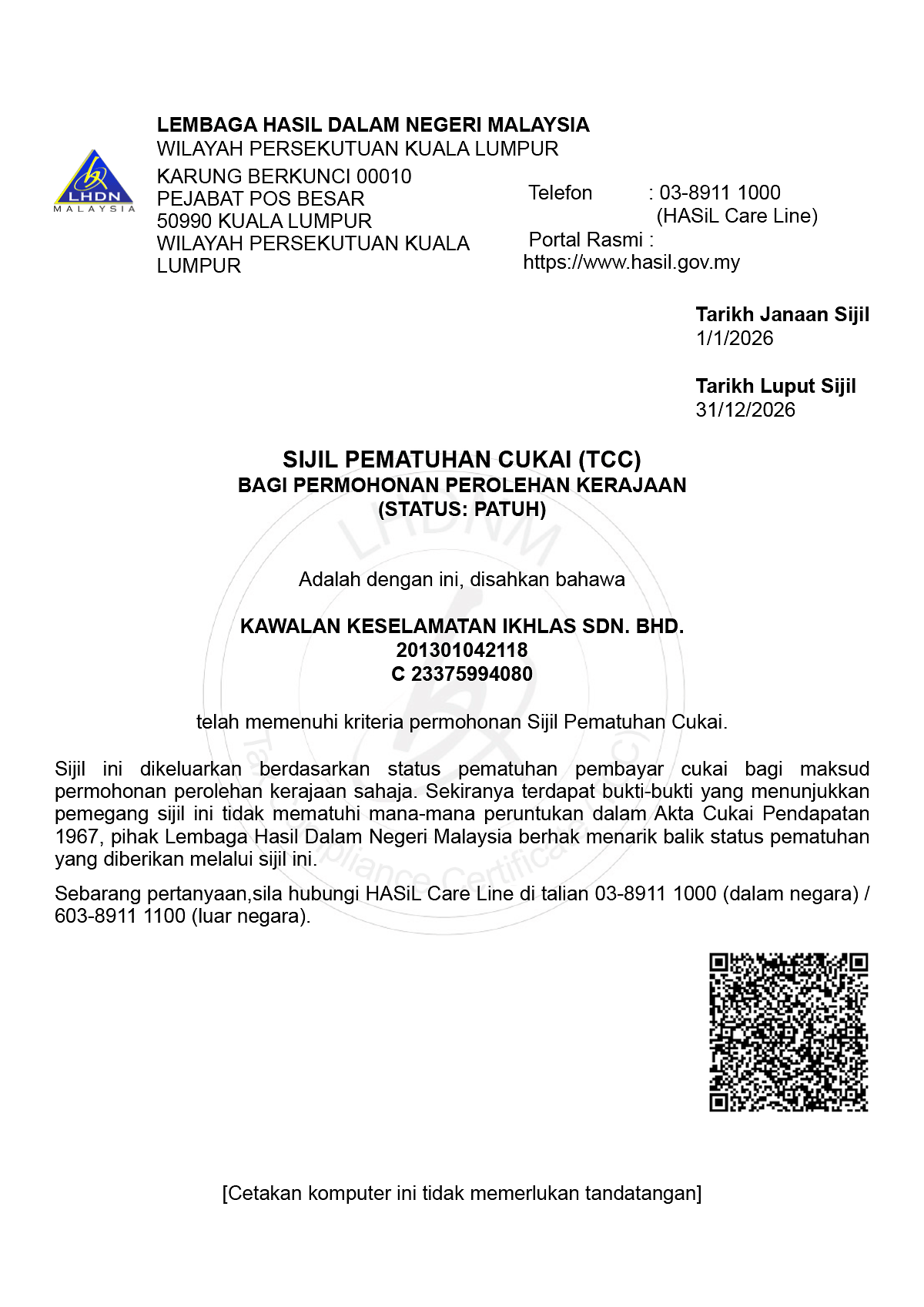 Kawalan Keselamatan Ikhlas provide professional and reliable security services to ensure the safety of people, property, and assets. Our trained and disciplined security personnel deliver effective guarding, access control, and patrol services tailored to our clients' needs. We are committed to maintaining high standards of professionalism, safety, and customer satisfaction.